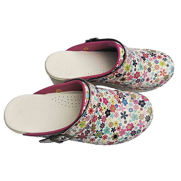 - Reinforced, padded instep holds your foot in the clog