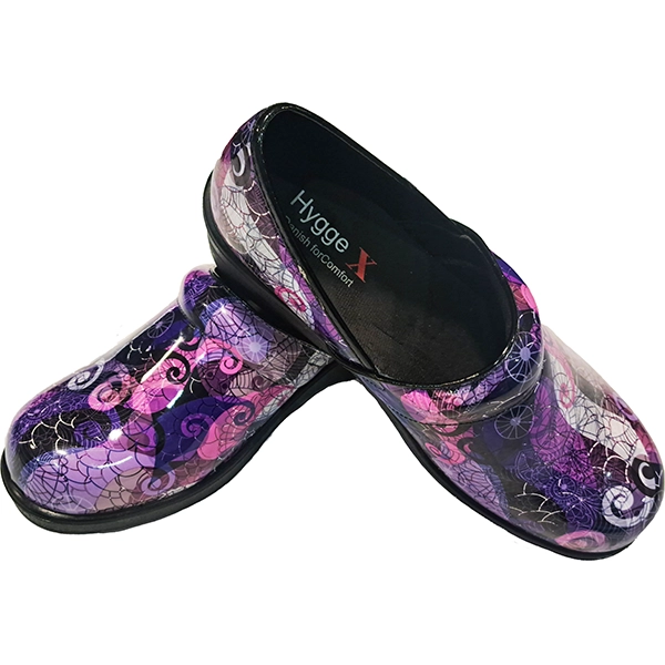 The Hygge X Purple Haze Professional Healthcare clog is designed to redefine comfort and convenience for healthcare professionals and anyone in need of sturdy, reliable footwear. Its innovative features and premium materials make it a standout choice for both work and everyday wear. Crafted with an easy-to-clean PU leather upper and enclosed toes and heels, this stylish clog meets workplace standards without compromising on looks.